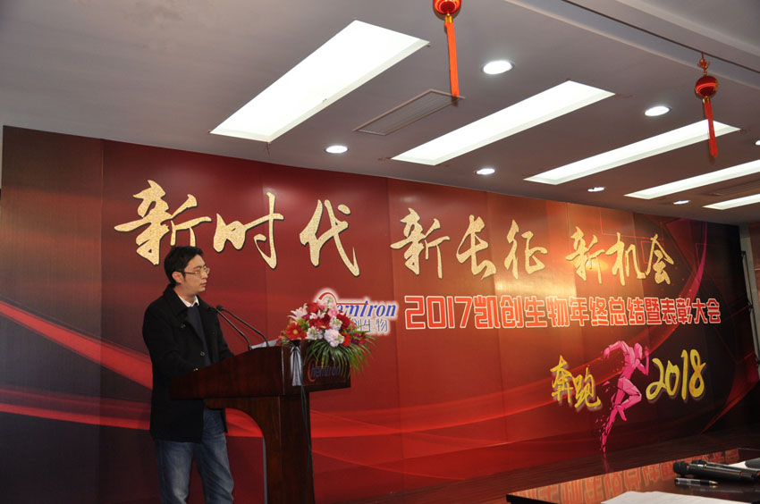 首先,由凱創生物副總經理王勤主持致開幕詞, 2017年度公司取得的成績做總結,并且展望了2018年的公司規劃,同時制定了新一年的發展目標。其次,各部門負責人闡述了自己部門的新一年計劃與發展。